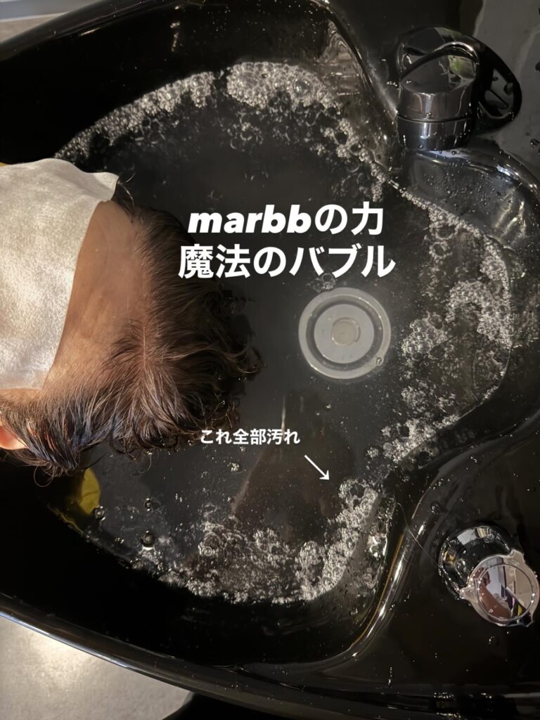 ウェーブハウスとまとでは、話題のマイクロバブル発生装置「marbb(マーブ)」を導入しております。微細な泡の力で、カラー剤の残留物質や毛穴の汚れをスッキリと落とし、カラーの退色を防いでツヤのある仕上がりを実現します。