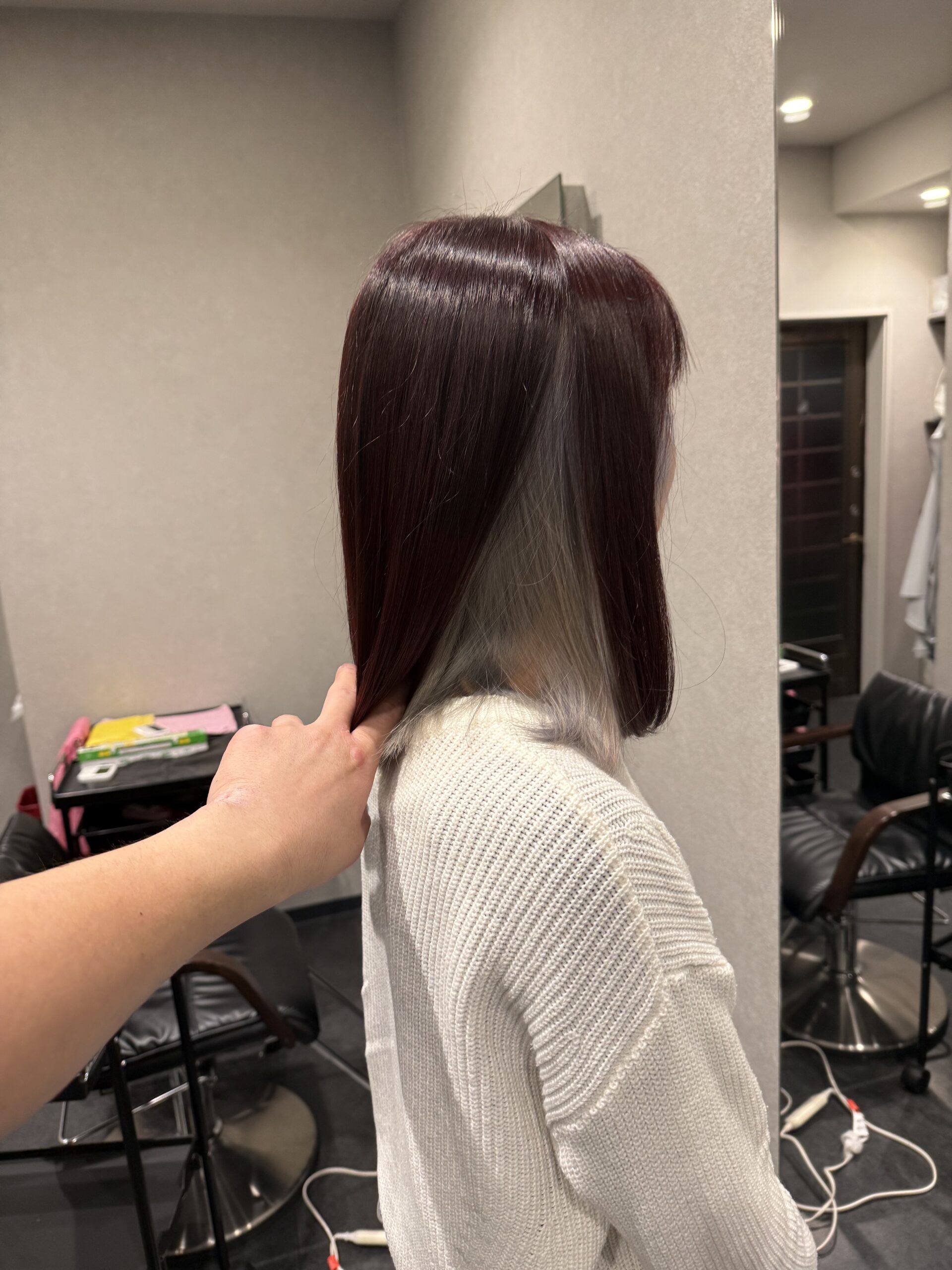 【滋賀県東近江市の美容室】チェリーレッド×シルバーのインナーカラー!大人の洗練デザインカラー